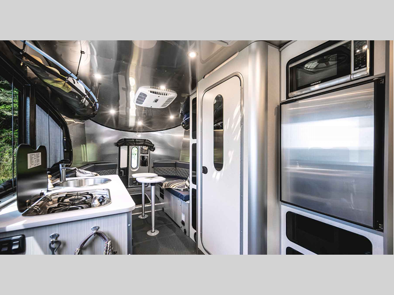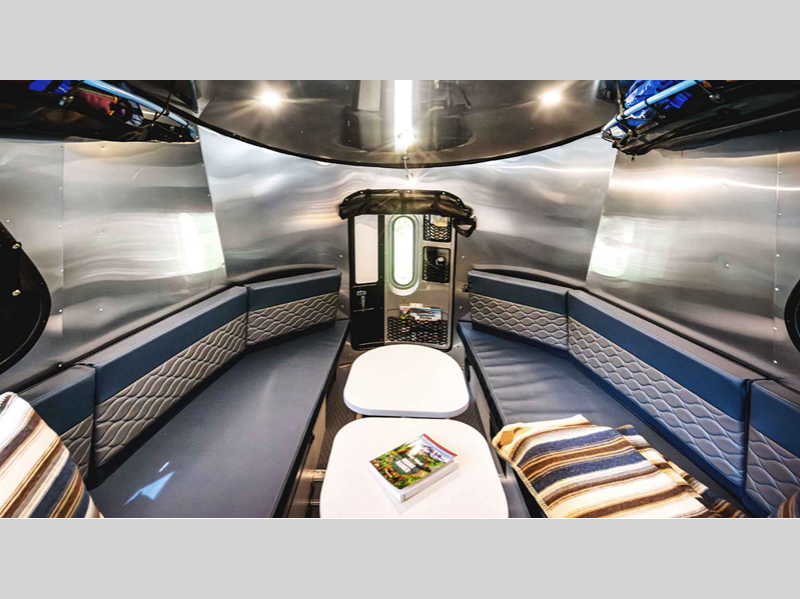Each is built with a riveted aluminum superstructure, an aerodynamic body and roof profile to help increase fuel efficiency, panoramic front windows to see the outside while inside, and an enclosed, aluminum insulated heated underbelly for better protection against the elements. The interior offers a wet bath, kitchen amenities, handcrafted marine-grade Lite-Ply laminated interior cabinetry, seamless vinyl flooring for easy care, and comfortable sleeping accommodations.